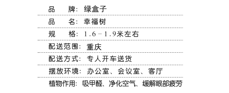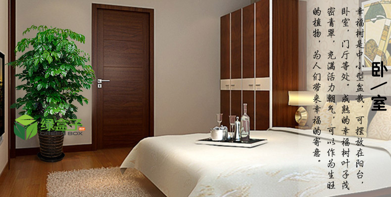 3、幸福樹喜暖熱環境.生長適溫白天為20℃-21℃,晚上為18℃-19℃,盛夏時要盡量將溫度控制在27℃以下。當環境溫度很高時,要適當用搭棚遮 蔭。增加環境濕度,從而提高葉面的濕度,越冬時期,溫度要維持在不低于8℃,溫度低不得低于5℃,如果低于5℃就可能出現凍傷的情況。