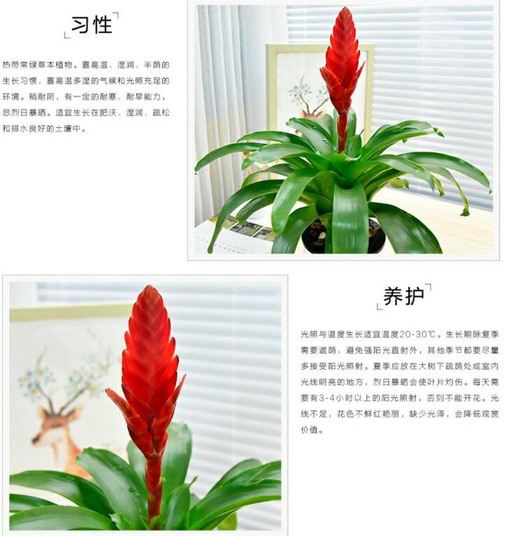 澆水與施肥生長期要注意澆水,經常保持盆土濕潤,特別是夏季溫度高,除了澆水外,還要經常向葉面噴水,提高周圍空氣濕度,以免干燥引起卷葉。同時要經常保持葉筒中有清潔的水,空氣濕度保持在60%以上。澆水要適量,既不能使盆土過濕,也不能讓盆土過干燥。冬季要減少澆水,盆土以保持略濕潤為宜。除施基肥外,生長期要補施追肥,一般每月施2~3次稀薄的餅液肥,肥要施在盆土山和水槽中。必要時,也可進行葉面噴稀薄的液肥,促進旺盛生長。冬季不施肥或施少量腐熟的有機肥。施肥切忌氮肥過多,以免發生徒長、脈紋褪色等,生長期可每月施用氮、磷、鉀均衡的稀薄液肥一次,花期臨近前,可追施0.2%的磷酸二氫鉀2-3次,使花苞豐滿艷麗,秩末入冬前停肥。
