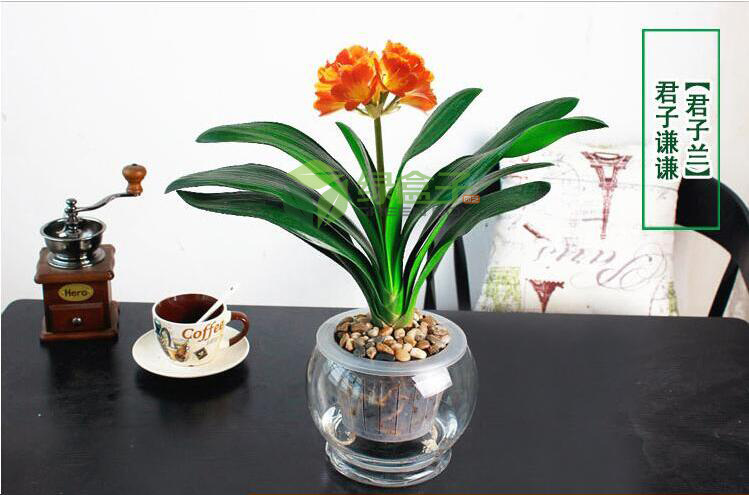 水培君子蘭為石蒜科、君子蘭屬多年生草本植物,其植株文雅俊秀,有君 子風(fēng)姿,花如蘭,而得名。小花有柄,在花頂端呈傘形排列,花漏斗狀,直立,黃或橘黃色。可全年開(kāi)花,以春夏季為主。果實(shí)成熟期10月左右,花、葉并美。美 觀大方,又耐陰,宜盆栽室內(nèi)擺設(shè),為觀葉賞花,也是布置會(huì)場(chǎng)、裝飾賓館環(huán)境的理想盆花。還有凈化空氣的作用和藥用價(jià)值。