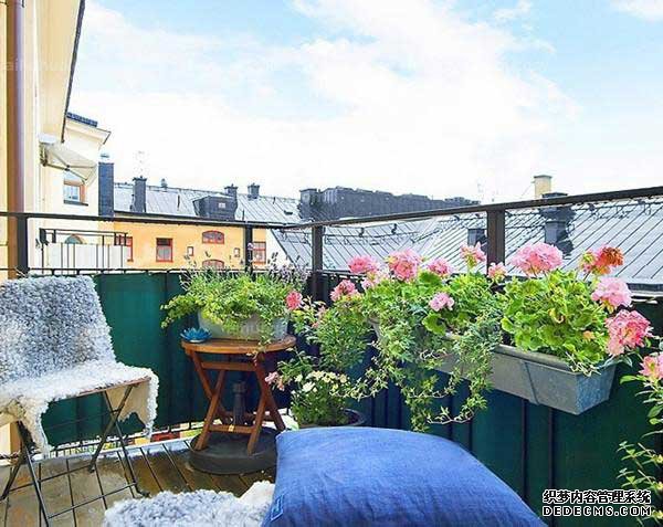 在陽臺的一角,可以設置花槽或花盆架。根據當地氣候和各人愛好,栽植各種花木。花木的種類,既可以是常綠的盆景,又可以是四季鮮花;既有蔥籠的樹葉,又有耐旱的球莖;有的柔軟垂吊,有的舒展延伸;有的可觀賞花葉,有的可結出碩果,形成一個小百花園。為了夏日遮陽,可以種植牽牛、金銀花、葡萄等,并在陽臺東曬或西曬一側牽扯細繩,讓它們攀緣而上,形成一個綠色屏障,不僅形成立體式綠化,還可降低室內溫度。北面陽臺還可以盆栽和放置一些萬年青、君子蘭、蘭花、四季海棠等耐陰植物,會使陽臺顯得格外清新,幽雅寧靜。