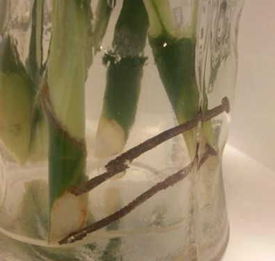 鐵釘、鐵釘、鐵釘、重要的事情說三次,只需要在養富貴竹的瓶子里扔根鐵釘下去,很快就能長出根了,而且葉子還特別綠