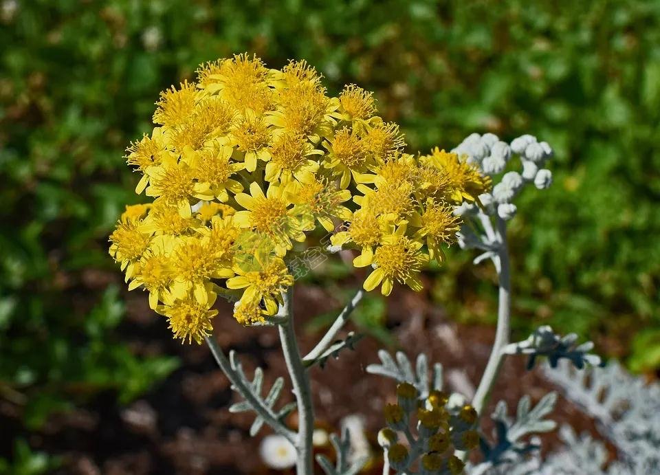 銀葉菊作為重要的觀葉植物,常常被人忘記其實它也是有花的。 通常有黃色和粉紫色,十分有菊科植物特征。
