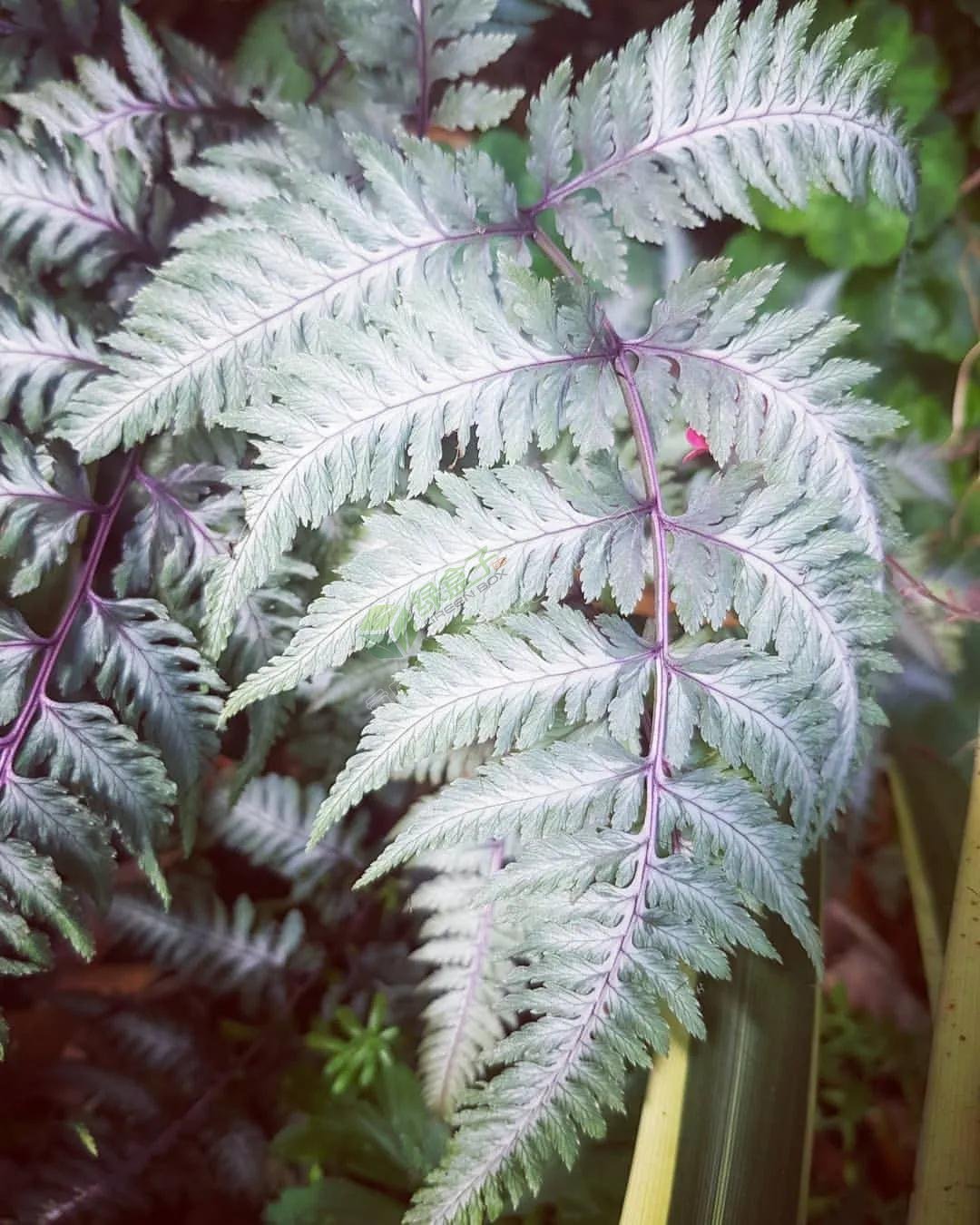 本身具有好幾個變種品種,有比較常見的畫蕨(‘pictum’),還有鬼蕨(‘ghost’),屬于宿根的陰生草本植物,最低能耐-20°C低溫。蹄蓋蕨一般都挺矮小的,葉片銀灰色,中間有紅色的心和莖。畫蕨品種會隨著天氣變冷逐漸出現(xiàn)紅色脈絡,到了冬天地上部分就都會枯萎,進入休眠狀態(tài)。